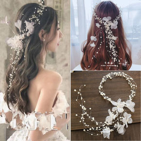 新娘头饰超仙花朵手工发箍结婚旅拍造型配饰优雅气质串...