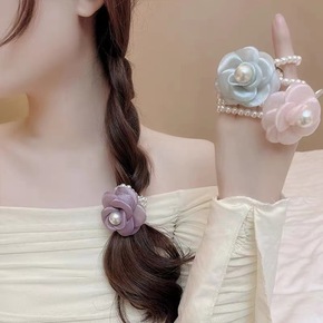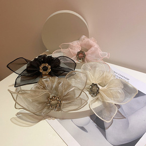 山茶花发夹小香风缎面温柔少女头饰复古花朵头绳超仙网...
