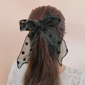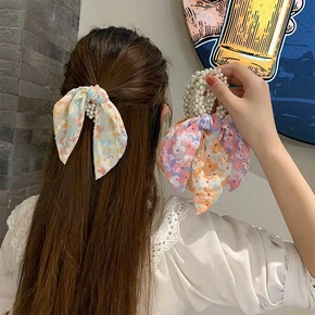 韩国长款蕾丝蝴蝶结珍珠发圈 超仙ins网红弹簧夹少...