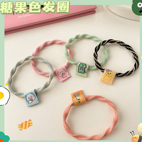 韩国拼色麻花发圈糖果色布标头绳超仙少女扎马尾皮筋高...