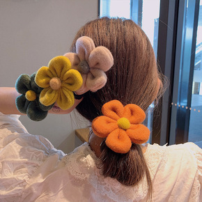 韩国羊毛毡大花朵毛绒发绳大号儿童发圈百搭女童头绳女...