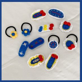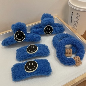 克莱因蓝发夹笑脸毛毛发圈韩版抓夹笑后脑勺盘发抓少女...