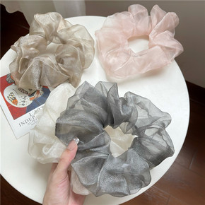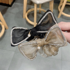 韩版珠光蝴蝶结弹簧夹布类网红头饰缎面亮色大肠发圈气...