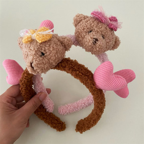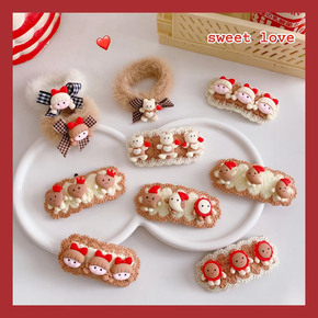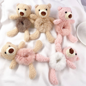 秋冬暖色毛绒卡通发夹爱心小熊少女皮筋扎头发绳甜美简...