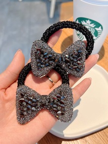 韩国精致水钻蝴蝶结头绳头饰女生气质丸子头皮筋发绳网...