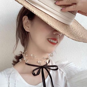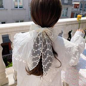 甜美森系蕾丝飘带小丝巾发带女可爱百搭头巾领巾薄款盘...