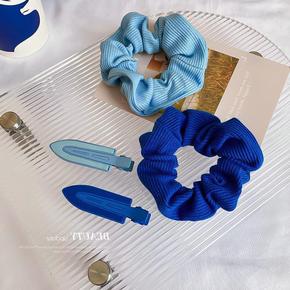 韩国秋冬克莱因蓝大肠发圈发夹ins森系扎马尾发绳气...