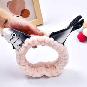 可爱卡通创意小鲨鱼头带化妆洗脸发圈女生森系甜美立体...