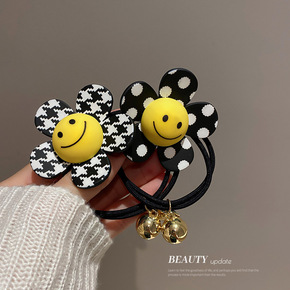 笑脸花朵圆牌发绳韩国小波点甜美可爱皮筋小众森系少女...