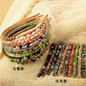 韩国韩版发饰 多彩超闪发卡 不规则水晶发箍 绕宽边...