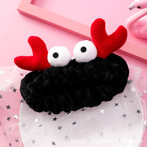 韩国卡通可爱螃蟹发带发箍毛绒鹿角弹力发带大眼睛女士...