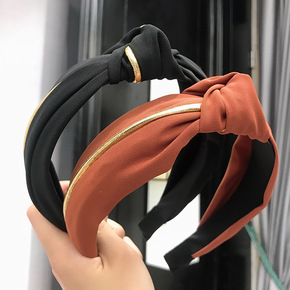 大喜庆同款中间打结发箍 纯棉针织复古纯色发箍 洗脸...