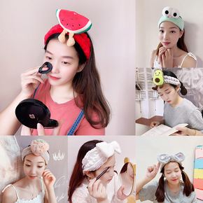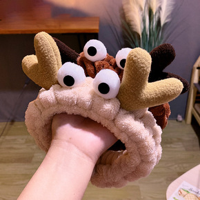 韩版可爱大小眼睛螃蟹头带发圈麋鹿角洗脸束发带时尚红...