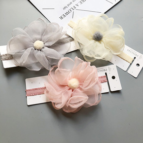 新款韩国宝宝发带雪纺纱大花朵发带发箍婴幼儿童弹力发...