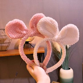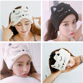 韩版可爱猫咪洗脸束发带可调节魔术贴宽边发带刺绣法兰...