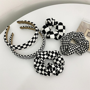 棋盘格发饰黑白格子大肠圈网红皮筋发圈布艺扎头发头绳...