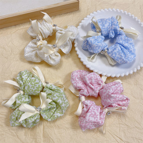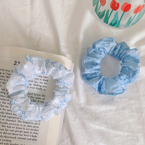 奶蓝色花朵大肠发圈新款布艺猪肥肠圈甜美扎头发皮筋女...