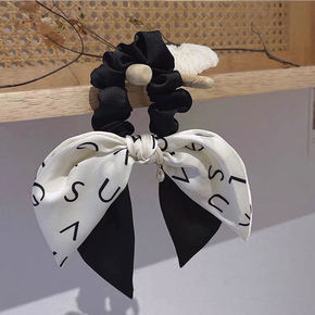 2022新款字母款大号燕子尾珠子吊坠发圈时尚飘带蝴...