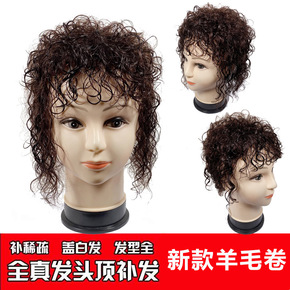 头顶补发片真发遮白发逼真无痕隐形轻薄款玉米烫刘海假...