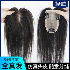 头顶补发片假发片女头顶真发3d夏季自然前额遮白发空...