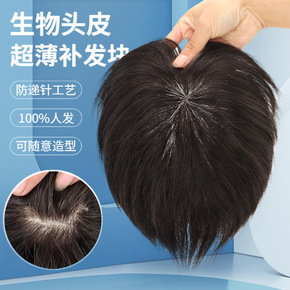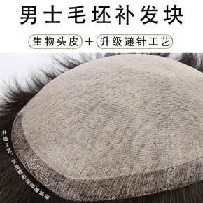 优质生物头皮男士补发块纯手工织真人发丝男士假发隐形...