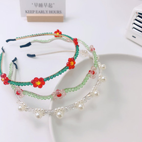 韩国超仙气水晶花朵发箍手工缠绕发卡森系甜美珍珠头箍...