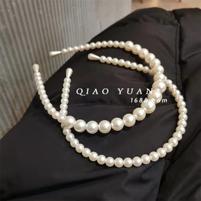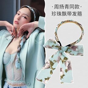 碎花珍珠发带女绑发夏天发箍飘带头饰夏发卡丝带丝巾头...