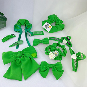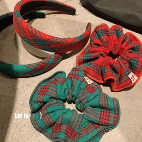 港式复古绿撞色格子高颅顶发箍发圈红绿格纹高级感头饰...