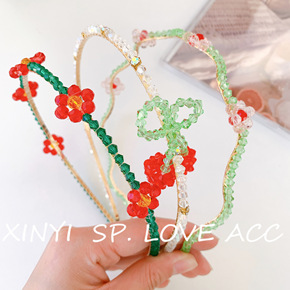 春夏浪漫水晶花朵发箍头箍手工编织发卡少女心发饰日韩...