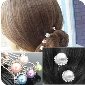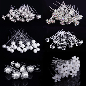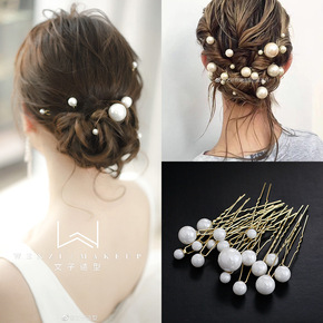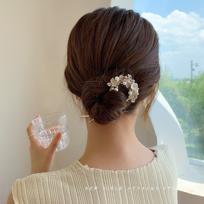 珍珠水钻插针U型夹新娘盘发编发丸子头发插配饰小发钗...