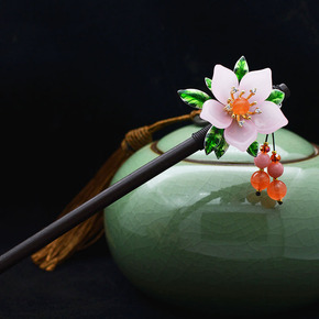 古风发簪花卉仿玉琉璃发梳 纯手工汉服头饰 古风对夹...