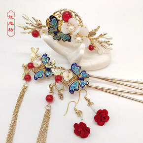 原创设计女流苏汉服旗袍盘发发簪女步摇古风小众丸子头...