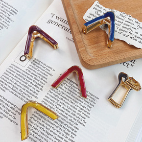 韩国ins极简带标奶茶色椭圆形发爪方形少女气质发夹...