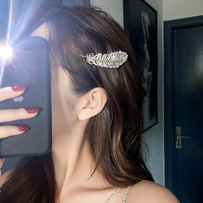 新款镶钻羽毛发夹简约发饰韩国气质网红时尚边夹鸭嘴夹...