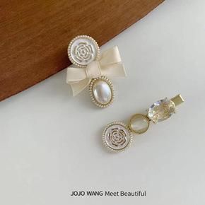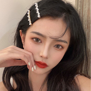 发夹侧夹珍珠发夹子两件套发夹女韩国时尚发饰水钻一字...