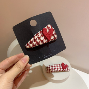 新年红发饰文艺复古千鸟格酒红异形爱心几何海绵BB夹...