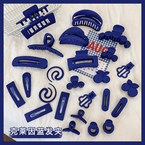 克莱因蓝色发夹女 ins塑料发卡韩版发饰喷漆大号盘...