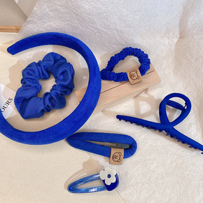 超显白克莱因蓝系发夹深蓝色发饰时尚韩国蓝色花朵刘海...