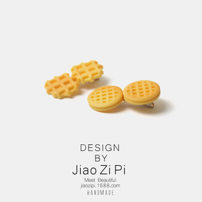 华夫饼发夹~趣味搞怪仿真食物饼干侧边夹日系可爱少女...
