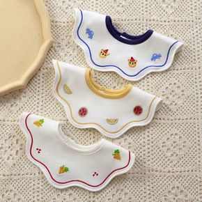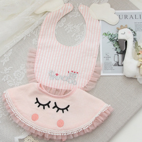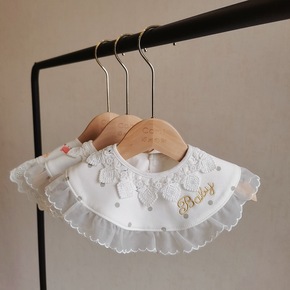 21新款宝宝围嘴棉质防水儿童口水巾精美刺绣360度...
