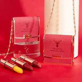 抖妆丝绒皮包口红 防水显妆易上色口红套盒 包包三支...