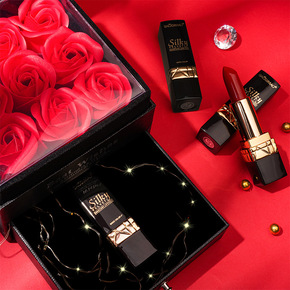 口红礼盒玫瑰丝绒不掉色不沾杯温馨仿皮情人清香甜蜜口...