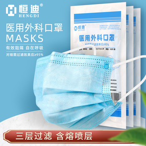 恒迪口罩三层成人一次性医用外科口罩三层熔喷布99*...