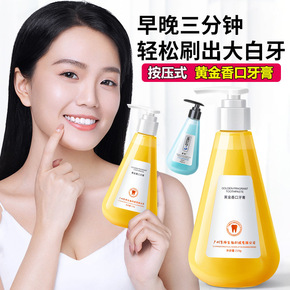 新款按压式黄金香口牙膏去黄去口臭去牙渍牙膏亮白牙齿...