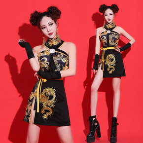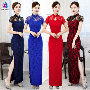 新款夜上海复古改良舞蹈旗袍蕾丝长款高开叉长裙子舞台...