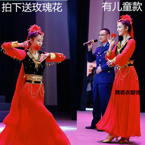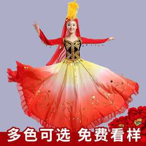 同款新疆维吾尔族舞蹈演出服装女少数舞台开场舞大摆裙...