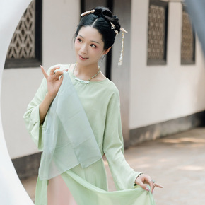 王诗意原创设计中式复古雪纺类提花练功古典舞绿色身韵...