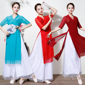 广场舞东方古典练习舞蹈练功服装汉服古典舞飘逸纱衣阔...