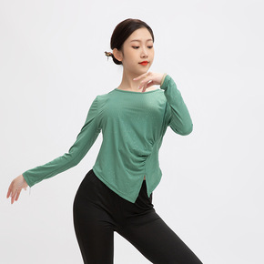 古典舞褶皱设计练功服 圆领长袖上衣短款古典身韵开叉...