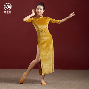 形体礼仪导师丝绒旗袍修身舞蹈练功服装连体长裙古典训...